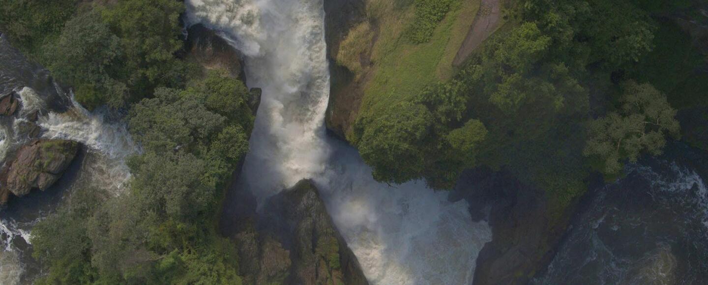 The 160-foot wide Nile is squeezed through a 23-foot chasm in the rocks, creating one of the most powerful waterfalls in the world. A gateway into an untamed savannah world below.
